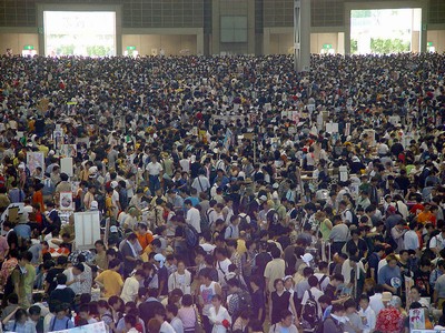 確かに人はたくさんいますが、密度という意味ではどこかの花火大会とか、どこかの初詣とか、それほどスペシャルではないイベントより空いているんじゃないでしょうか。中は歩きたい速さで歩けました。少なくとも「コミックマーケットはこんなに混んでる」的な画像から受けるイメージよりは快適です。