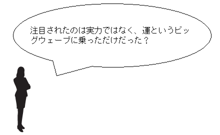 ところが、「世に出ました」で終わらせればハッピーエンドのストーリーでも、続けていくと、往々にして、「その後、輝きを失いました」というアンハッピーエンドへと突き進む。輝きを失ったとまではいかなくても、「多くのチャンスをもらいながら、その後、輝きを増すことは出来ませんでした」となることも少なくない。